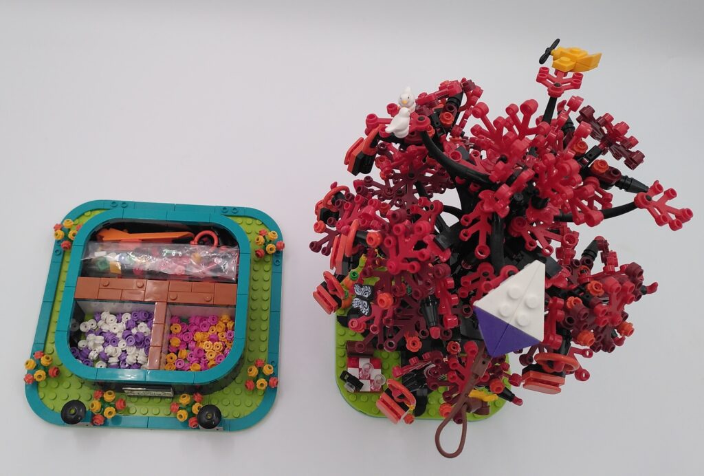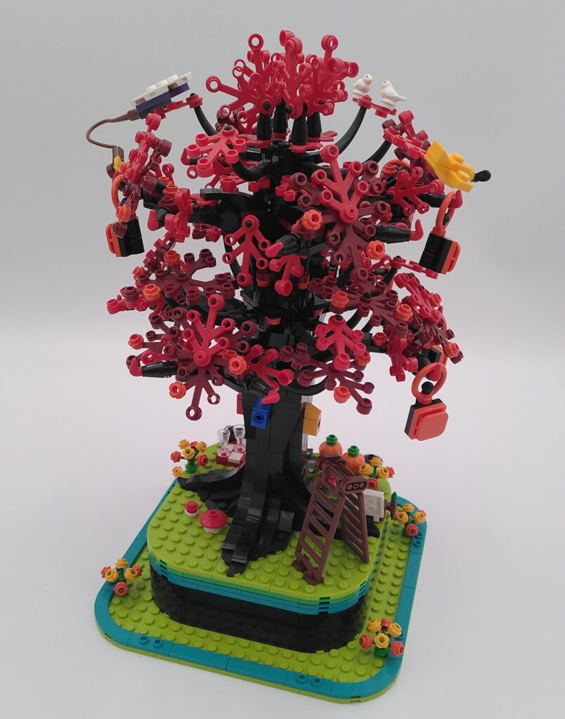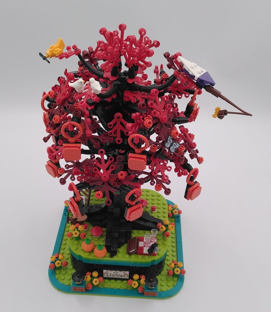 Ganz so schlimm wie damals im Kinosessel erging es mir beim Bau des LEGO® IDEAS Sets Nr. 21346 zwar nicht. Das Ergebnis aber hat mich unwillkürlich an meinen Jahre zurückliegenden Kinobesuch erinnert. Mir ist rätselhaft, welche Überlegungen den Designer zu einem pechschwarzen Stamm und (dunkel)rotem Blätterkleid geritten haben. Es sieht ein bisschen aus wie nach einem Waldbrand.